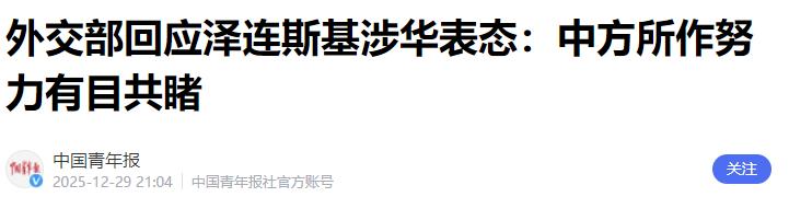 北青政知新媒体:泽连斯基称“没有看到中国有意愿协助推动和平”,中方回应